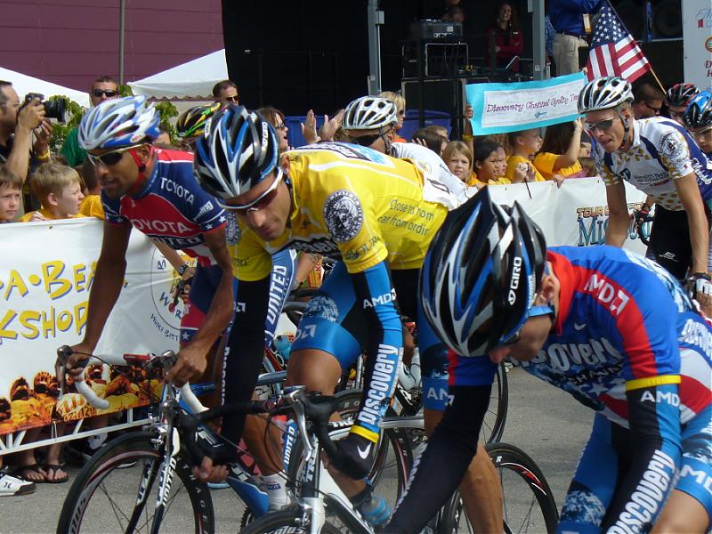 I was at the Start/Finish line in St. Louis today, and the whole atmosphere was great. I got to stand right next to George's bike while he was at anti-doping - couldn't resist a quick pat on the seat (of the bike, not George :p ).