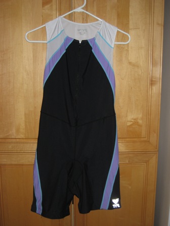 I bought this in 2006 and wore it three times (practice swim, practice bike, and during the triathlon). The lake was kind of murky, and it seems to me that the white part didn't get really white after I washed it. The inseam is 8". (The legs are really the same length, it's just hanging funny.)