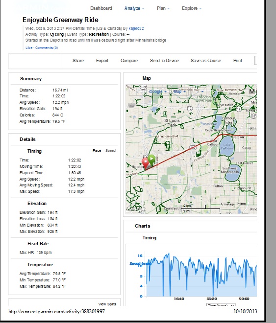 This is what prints out. Note the map on the right. It doesn't show the entire ride.