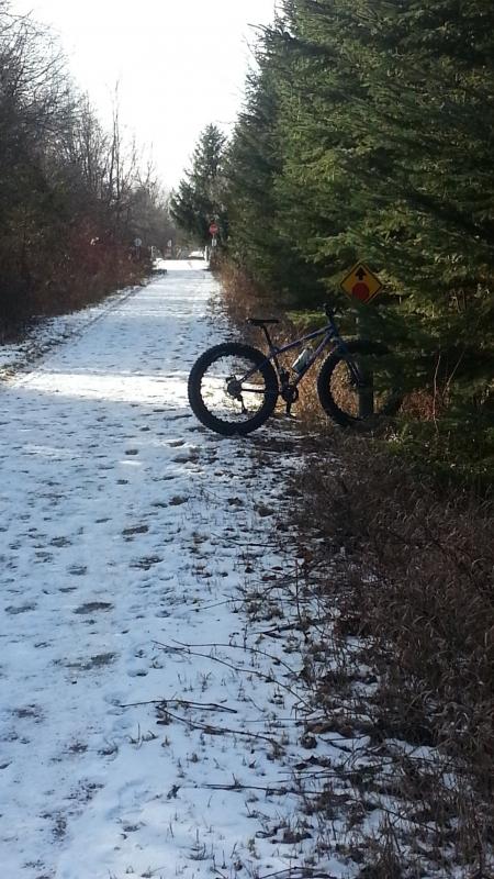 II took my fat tire bike out on the rail trail yesterday. It was cold but the sun was shining. I layered up and stayed warm. The only thing that bothered me were my toes. Couldn't keep them warm. Need to try a few things this winter.Attachment 17479