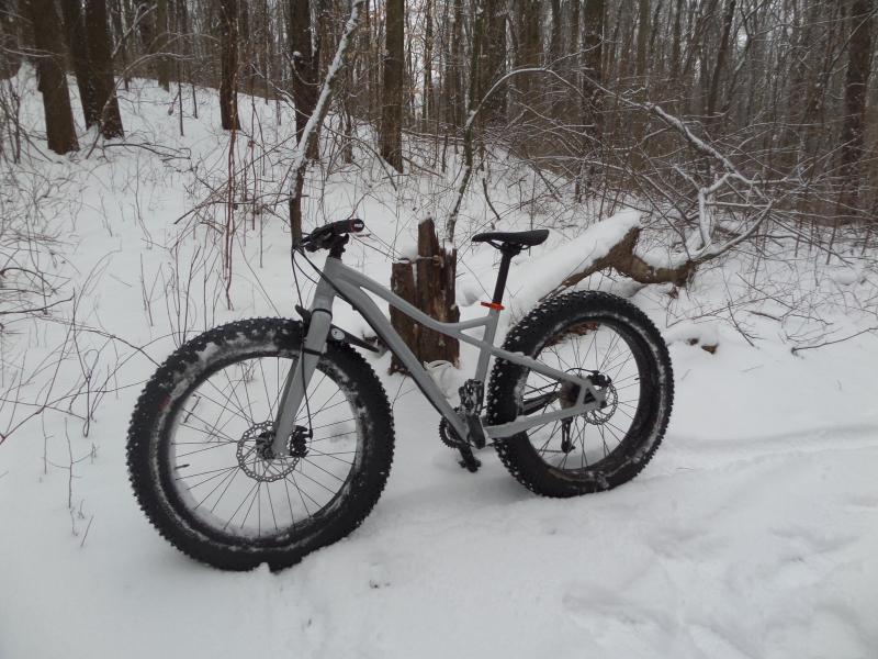 We got some snow in MI, so the hubby and I headed to the trails to ride. What a blast!!! She is like a tank and just rolls over everything in her path. I never though I would like a fat bike but, once I test rode a few, I was hooked!!!