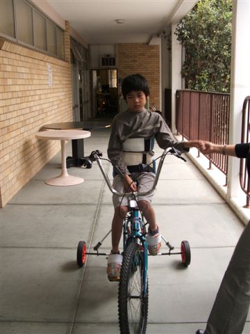 So yesterday we went to the volunteer group called Technical Aid to the Disabled and they literally velcroed Kieran into a sample bike. And he actually pedaled a little himself. I'm so thrilled (Kieran not so!). But, I just want to publically thank and acknowledge all those quiet achievers who do things like this for people they don't know. I'm so happy that my son can share a really big part of my life.