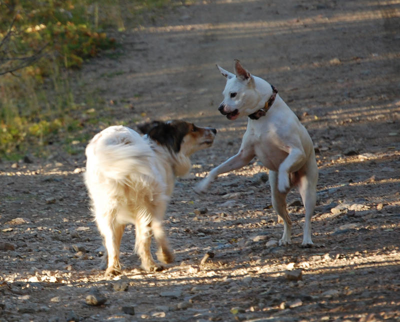 I'm sure Roxina is Dachshund and another longer-legged terrier type but Gingerella looks like the muttliest of mutts. I'd like to say Chinook but I doubt it. She has a very thick coat and an undercoat, hates the water but loves the cold.