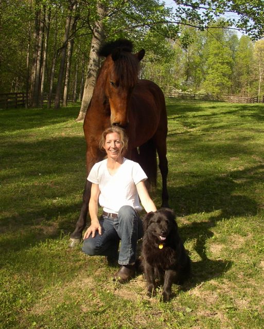 This is me with my horse "Tati" (rhymes with fatty as in "Fatty Tati") and our dog "Maddie":