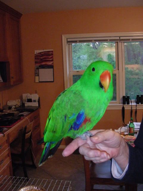 Beautiful eclectus, I'm so glad you had the guts to catch him. I've always been amazed at the number of people afraid of my bird, and he's a little smaller.