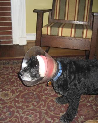 poor AJ. Not only does he have to wear The Cone, those stitches must be itching him crazy.