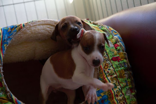 I really am trying not to post too many puppy pictures, but I just can't help myself. They are just over a month old and are developing real personalities. the biggest boldest is Tari, mine! in many of these photos she is pouncing on one of her siblings (and chewing on them).