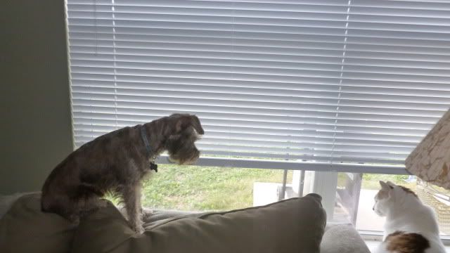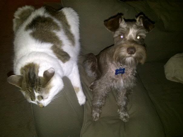 Sylphide, 8 years old, is on the left. Her eyes are a little glazed since she's on pain meds right now. She fractured her foot -- I have no idea how. She's very rambunctious and always active -- so it must have been in one of her wild races and leaps. Amor, to the right, is 5 1/2, and also very active. I adopted him from a local rescue when he was 18 months old, the victim of severe neglect. His ears were in such horrifying, irreparable condition that they had to be removed (from the inside, and sewn back up so you can't tell). This means our little guy is deaf but you wouldn't know it. He's a trooper, and is well trained to hand commands. It took me a lot of time to teach him to come when called though! He responds to hand claps, gestures and finger points. They are my babies...