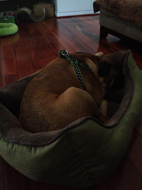 Here is my new Brit, Tiger. He does this EVERYWHERE. It's the Tiger pose.