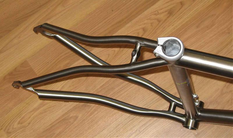 Well, my frame arrived safely in San Leandro today, and I ducked in the LBS door just before closing to take a look. Chris fished it out of the box and hung it up for me to take some pictures, and graciously waited around while I did so, even though he had to be somewhere...