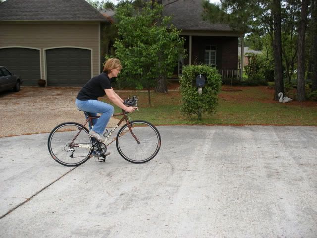 I just have one thing I want you to check (cuz it seems to get missed with the women riders I work with). Get on your bike, leaning against a wall or on a trainer stand. Make your cranks horizontal (one at 3:00, one at 9:00). Ask DH to tie his keys to a string and dangle the string from the front of your forward knee to a couple inches from the ground. Put the string so it hangs along the inside/bike side of the crank. The string should cross the crank somewhere from the pedal spindle to 3 cm back from the spindle. (toward the bottom bracket.)