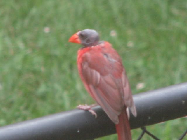 Oops...sorry for the confusion....that's not a picture of Molly! Molly looks like a regular old cockatiel. That picture is a wild cardinal that was out at our feeder this past summer.