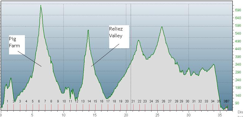 McEwan - Ohhhhh noooo, not McEwan! :eek: We went past McEwan and saw all the spray-painted indicators for the Grizzly Peak Century, and just kept on going! There were plenty of hills that were definitely noticable to me, but when I looked at the elevation profile from my cyclometer, they were NOTHING compared to Pig Farm - it's actually pretty funny to look at it. Maybe I'll post it tomorrow for a laugh!Quote: