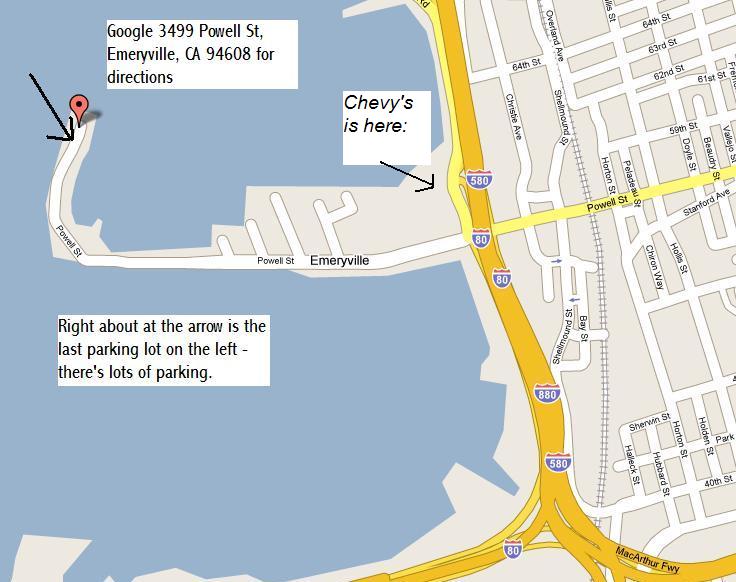 Where: At the very end of Emery Point (Google 3499 Powell Street, Emeryville for directions)