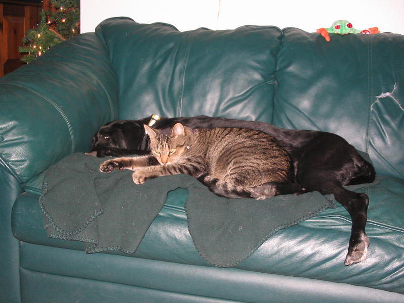 Here is our crew. The black lab mix - Kelly, she will be 15 in August, the white springer mix - Tosh, she will be 12. The cats, the white/gray - Patches(17), tiger/white - Roady(8), big gray - Boo Boo(8), tiger - Kitty Man(15), black/white - Ben(8), gray tiger - Murray(3), all black - Molly(3). I think I got everyone. :confusedAttachment 5381