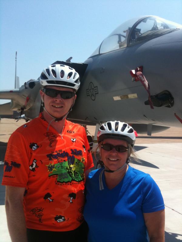 Photo of me at the Hotter Than Hell 100 Aug. 2010, and one with DH, also me in street clothes , and finally my NEW BIKE!