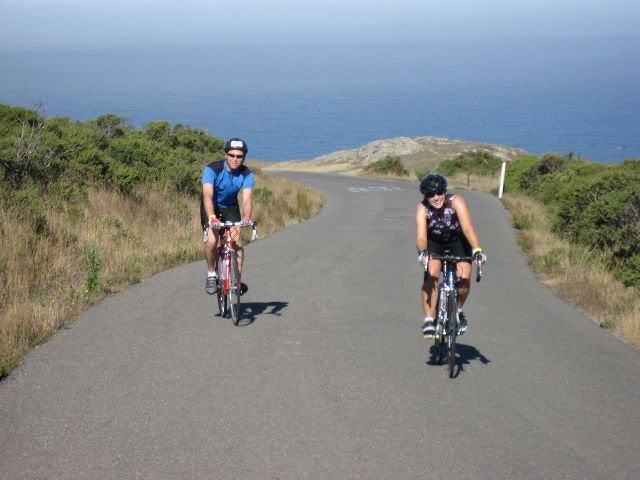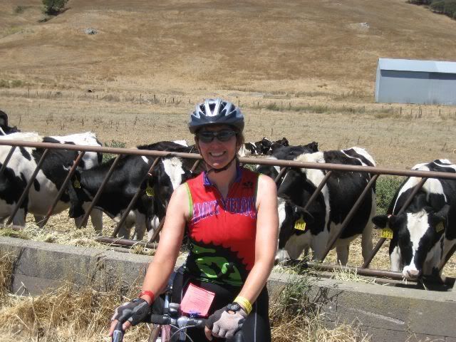 MP, you weren't kidding about the cows on Coleman Valley. We were a ways up the climb and we turned a corner and lo & behold, there's a cow standing partway into the road munching on some roadside grass. I tried to get a photo but it was getting steep at that point (getting, har har) and it behooved me to have full control as I was passing the cow's backside in case I needed to take Cow Evasive Manuevers.