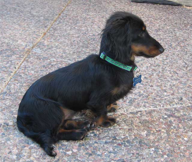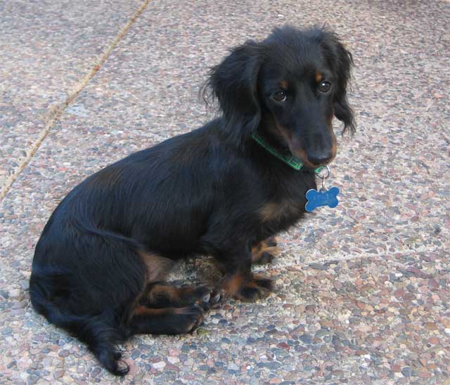 I have a new puppy! My partner and I got her a couple of days ago, and we're still waiting for inspiration on a name. She's a long-haired dachshund, and she'll be on the small side when she grows up. She's about 5 months old. These were from the first day, when she was still trying to figure out what I was up to, exactly. "Uh, who are you again??"