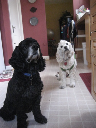 Here they are begging for treats. AJ's the black one, Ruby's white.