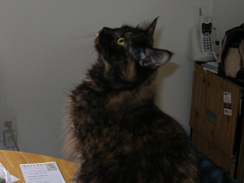 and the youngster, Calypso - who discovered somthing interesting on the ceiling fan. Hard to believe I've had her for almost a year.