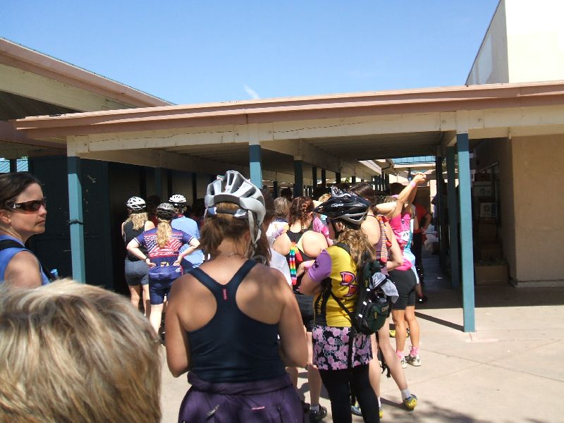 I looked around at the rest stops and lunch for familiar faces, but didn't see any. We all look so different in cycling gear as opposed to street clothes. Helmets and sunglasses hide a lot. And, of course, many dress a bit crazy for the ride. Shelley sported a bright blue boa and silver lame skirt and arm warmers. Maren's helmet and Camelbak were decked out in yellow and orange feathers. We all had tiaras attached to our helmets. I only took a few pictures and am waiting for the ones others took to be emailed to me. I'll try to post them soon.