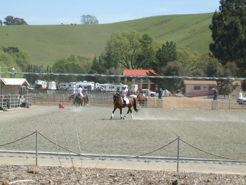 I remembered this place from last year, so I was sortof looking for it. Looks like they were having a horse show there, so it was great timing (this looks like the practice ring -- riders weren't wearing coats or numbers). Total eye candy -- these are some NICE horses. Wowie.... :p