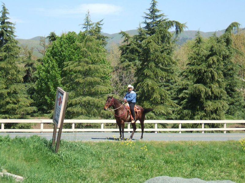 This was on the way back into civilization....he was just sitting on his horse, watching the bike spectacle go by. Pretty funny. Couldn't resist a pic & told him thanks. :D