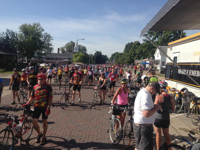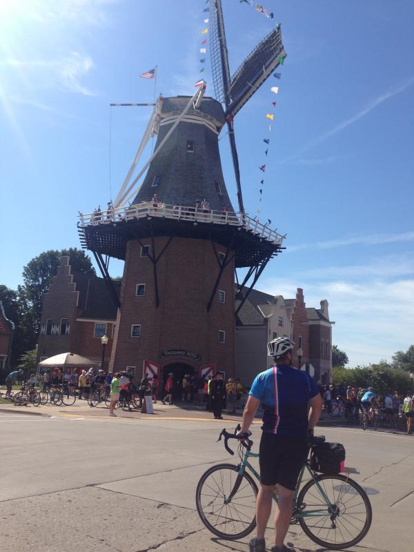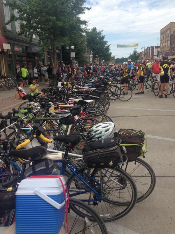 3 blocks solid with bicyclist as they came into my favorite town -Pella