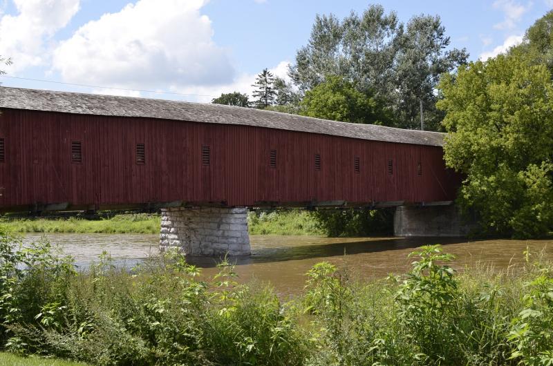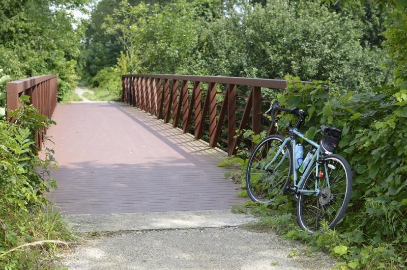 And today I checked out another rail trail not too far from home. I didn't have as much time today because of rain, so I only rode as far as the "Kissing Bridge" (about 15 km one way)! I knew some on on here liked covered bridges so I had to go and get the picture!:D