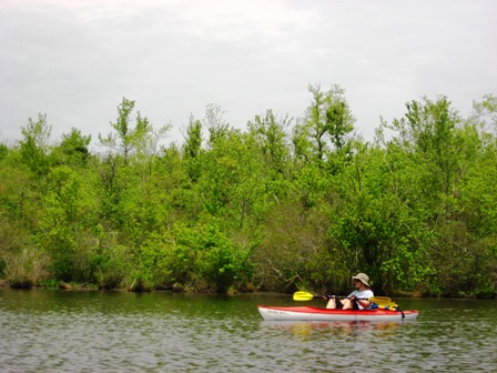 Then we did a bit of the wildlife drive & put in... Kayaked for a bit, Julie wanted some drift wood, so she kept trying to yank pieces and had a little pile on the kayak by the end of the trip.