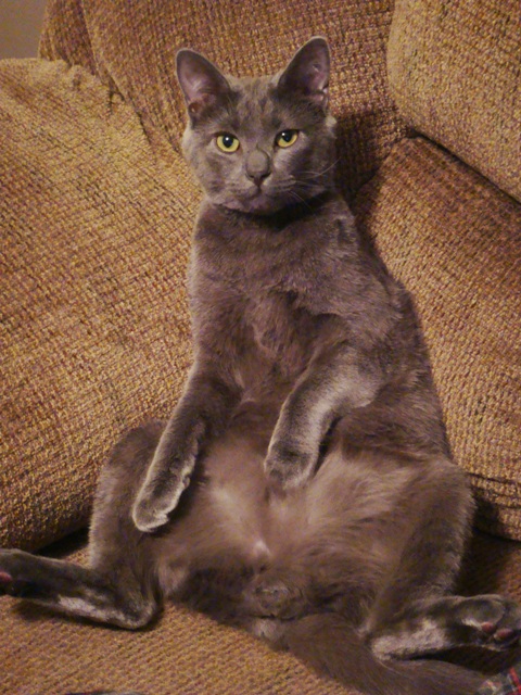 I like your vids, reddDesign!! Is yours a russian blue? We got ours at the local animal shelter. He is super vocal. I mean he doesn't just meow, it's more like what I would imagine a miniature pterodactyl to sound like!