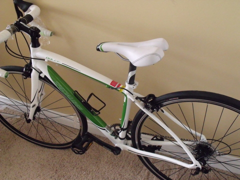 Anyway, I was pretty miserable when my 50th birthday rolled around this month. So... I went and purchased myself a 50th birthday present! A beautiful new Specialized Dolce Elite roadbike! You do not know how excited I am about this bike! I have been riding a Diamondback hybrid bike (that my husband picked out FOR me) for over ten years. I have wanted a road bike but was afraid to get one, and they are expensive for me. Anyway after wishing for a new bike for the last couple of years, I thought, you only turn 50 yrs old once, and I deserve it!