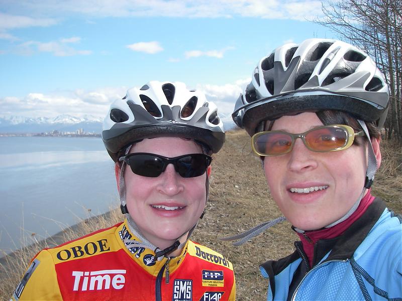 Here are a few photos of our ride today in Anchorage. A nice day to be out. We went along the coastal trail. Anchorage and the Chugiak Mts. in the background.