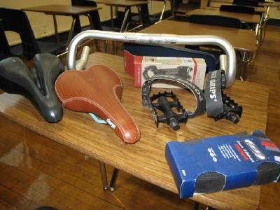 4. Charge Ladle saddle. In tan. Purchased this for a bike I wound up selling. Has blue rails, but I started using steel wool on it to take the blue off. See pic, so has some scratching. You can use it blue, or continue taking it off. Paid around $45 with shipping. Selling for $20 plus shipping.