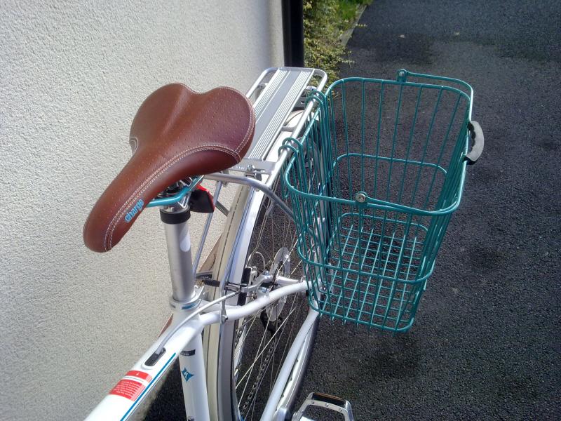 Thanks everyone! I showed her to the Mister tonight, and he was staggered by how light she was. I have to say that the future is looking short for my Marin, it's so heavy by comparison. The basket is a Basil bottle pannier, it just hooks on to the rear rack.