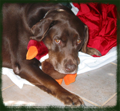 Oh, the indignities our poor pets bear for us! Winston, Magnus, and Chamoya are too cute for words, and Cocoa and his Christmas duck say, "Happy holidays right back atcha!"