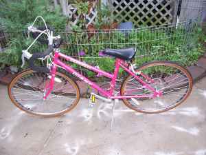 Sweet! My first road bike was an 80's Asahi street bike we got off CraigsList for about $50. I loved it, but it had shifter on the top tube. I ran to the lbs and bought my current baby. DH couldn't find "Blue" a home, and in a tender moment he took the antique woman's bike to the airport. He's a mechanic, so he rides the bike from his hangar to the hangar of an airplane needing work, leaves the bike in their hangar and taxis the plane back. Reverse when done! I hate to encourage bringing home another "kid" but she may be calling you.