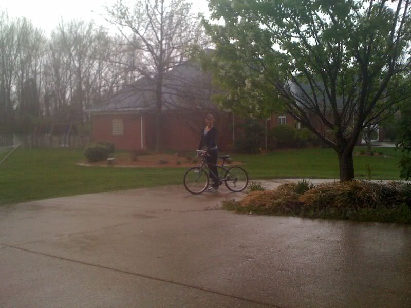 Mr. S drives the remaining half mile home...AND OF COURSE, the heavens open...AND THE BIKE's TIRES ARE FLATBWAHaHaHaHaHa