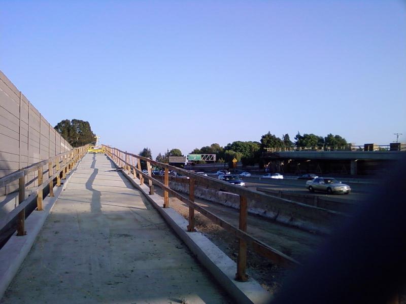 The construction crew won't let me see the blue printsThe existing bridge is fenced all the way to keep drivers from abandoning their cars on the freeway below declaring "This is crazy sitting here in this traffic. Look at those happy people above me. I'm going to walk to the store."