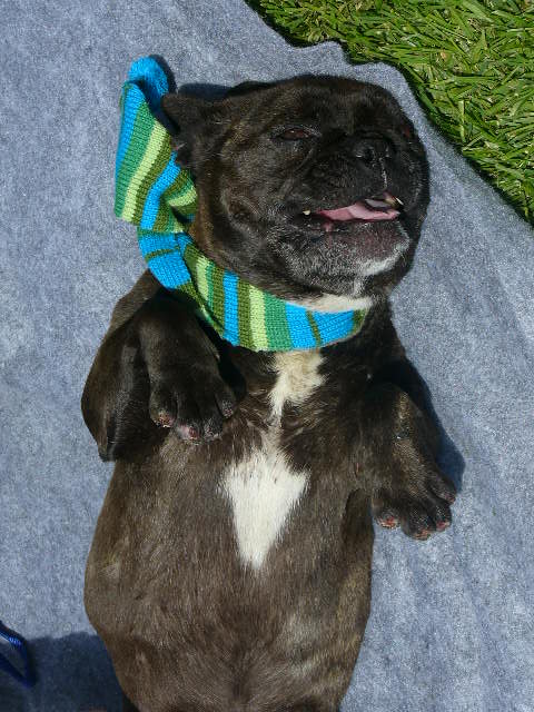 Third... our new girl comes home Wednesday from Cali. She is a 4 year old French Bulldog. Long story, but she was my husbands' ex-wife's dog that he had bought her before they separated. She either gave her away or sold her. He got a call on Monday from San Bernadino animal control.. a good citizen had found her while walking her own dog, hiding in the bushes, after having been dragged by a car(no idea how she got to California) She was micro chipped as a puppy, so it still had my husband's phone # in it. She will join her brother, Guinness, who is also a Frenchie, who is 5 years old, and my 2 cats!