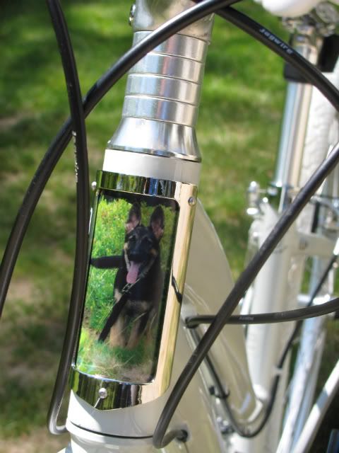 The picture is of my 2yr old GSD who just had knee surgery so Im riding with her on the front of my bike until she can run with me again.