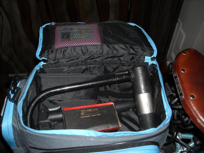 I've only had it a couple of days, but I'm really liking this little bag. Plenty of room inside (it has a divider that you can position wherever you want; I have it folded out of the way because my u-lock takes up too much space). The side pockets can hold one or two small items, or you can unfold the inner liner and -- voila! -- you've got two small panniers. Has a clip for a rear flasher. Easy on/off with the sturdy velcro straps. And it matches my bike!