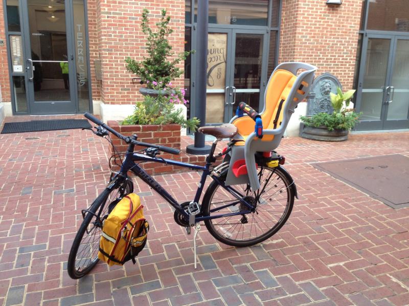 Here's an updated photo of my bike, now with the Topeak child seat. I thought it'd be helpful to post a review of sorts for others trying to decide between seat options.