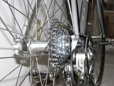 The wierdness on this bike is that it only has a single chainring--eliminating the front derrailleur means one less component to replace in a few years. Well, that was my theory. The single chainring caused build problems and time will tell if it was a dumb idea.