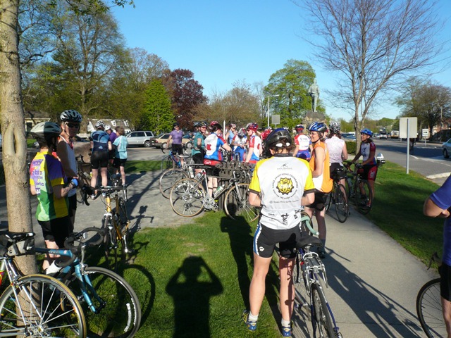 2nd NEBC group ride. Started with a group that was advertising 15-17 mph but I think they were doing 19. I was struggling to not get left too far behind. But then they regrouped and slowed the pace and the rest of the ride was nice. I was feeling more comfortable in the paceline than last week, and even rotated into the lead for a spell.