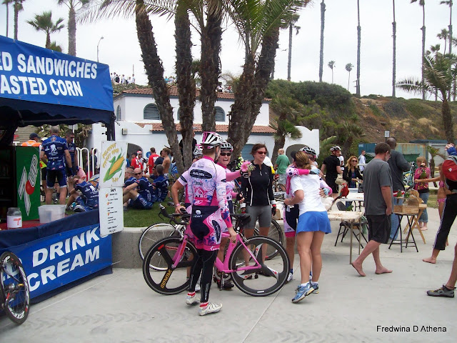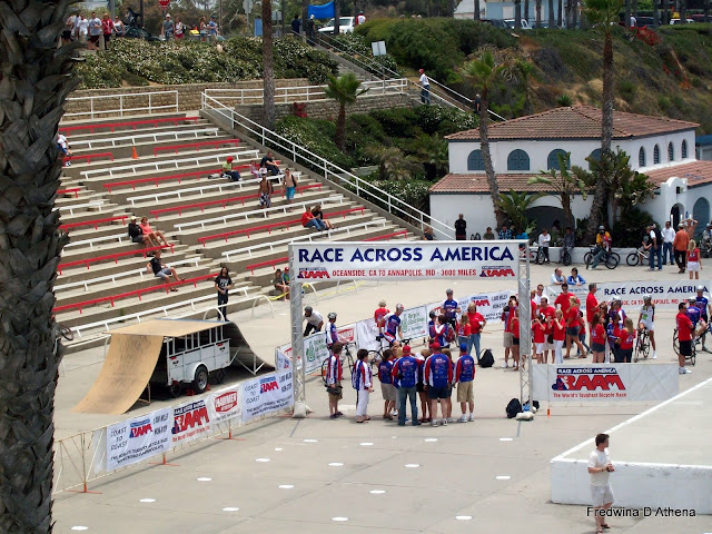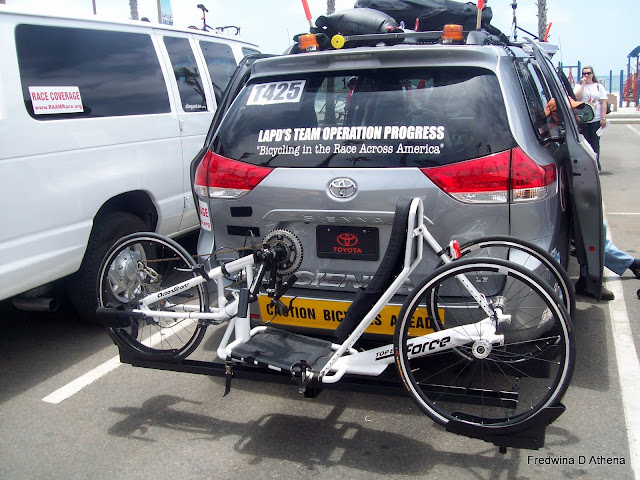 I got to see Team Fara - their rider was on a recumbent at that moment - though the team vehicles had several types of bikes ready. I also saw the final solo male to come through - he and his team are German. Apparently he only made the most recent time cut by 20 minutes - but he is hanging in there and is determined to finish even if he may not "officially" finish.