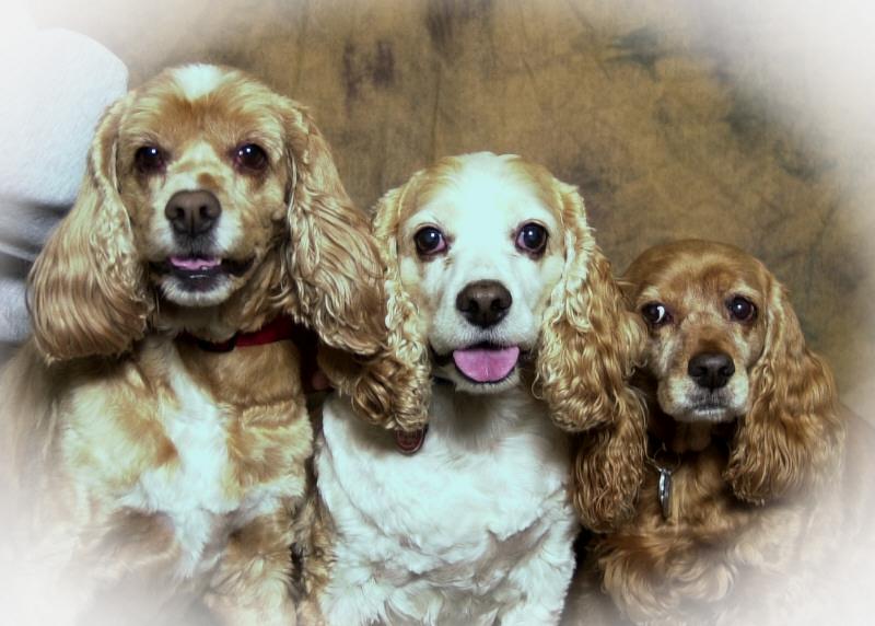 Oh, boy, a chance to show off my sweethearts! This was taken at my groomer's a couple of Christmases ago, and it was the ONLY picture in which they were all (sort of) looking at the camera and sitting still. Bailey's on the left, then Remy, then Cassie, all shelter dogs. Sorry the picture's so big, but there's just that much more cuteness for you to see!