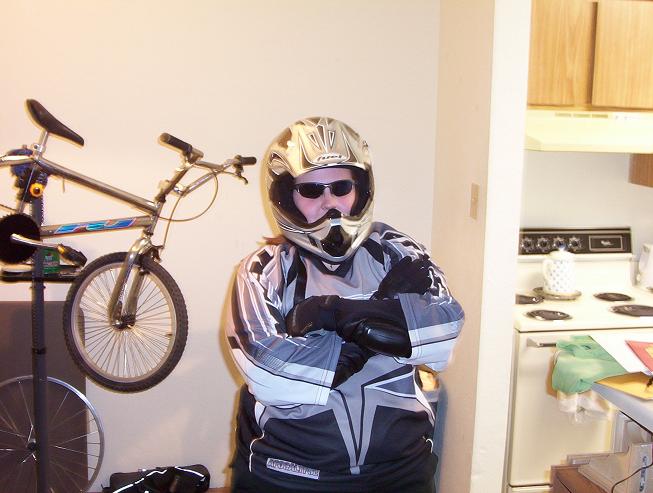 yup that is right we went to Cycle Gear here in town...cause no bike shop in town carries the padding. so i found some EVS knee/shin pads and EVS elbow/forearm pads. i did find some 661 gloves at LBS. and the helmet is a moto helmet from academy....but it is a fuel helmet. also Cycle Gear had a nice jersey for cheap. so i am in all black white and gray/silver. here are some picks...i will get some of the knee pads shortly.
