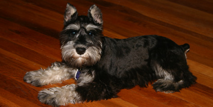 She (and therefore, we) were offered a 13 wk old, AKC registered, mini Schnauzer for FREE. A friend had flown to Kansas to pick up her 2nd mini pup (great breeder) and a slightly older pup had gone to home that decided it didn't want her. The pup, female, beautiful show quality (though we ain't showin' or bredding) accompanied our friend and her pup home from Kansas.