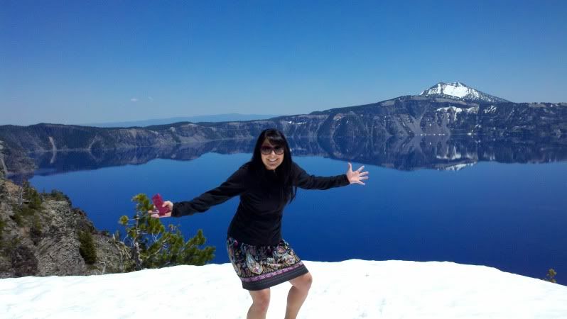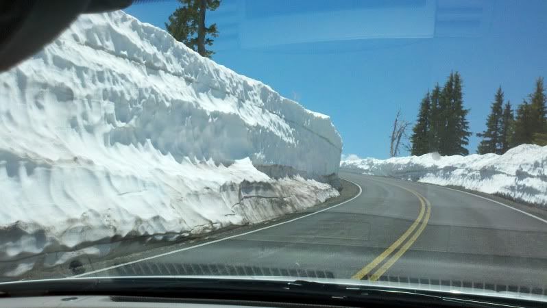 Anyway while you were out enjoying your ride yesterday Joe and I were driving to Klamath Falls on Saturday with our daughter. Otherwise I would have joined you guys! Joe and I drove Jackie down and her boyfriend will pick her up in two weeks. On their back home Jackie and Brian will spend a long weekend in Cannon Beach. A nice way to celebrate the end of class!Jackie is taking a two week long class at O.I.T. The school district she works for is paying for the class. She is taking a new technology class which she will teach this fall to her 8th grade class. Engineering, robotics, CAD. My daughter is a science math teacher in a middle school. She teaches 8th graders. And she loves her job! Anyway we stopped at Crater Lake on our way down and WOW did they get a lot of snow this winter. It's still pretty snowy up there! We saw a few cyclists climbing up and two cyclists jumping into a snow bank to cool off. The views were phenomenal!